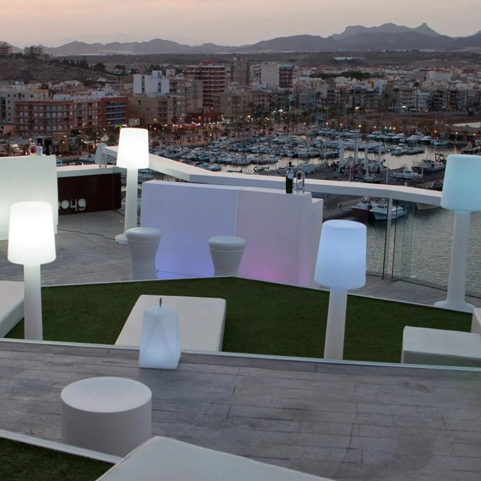 Witte LED vloerlamp Carmen met oplaadbare batterij voor binnen en buiten De op batterijen werkende LED vloerlamp Carmen biedt een breed scala aan verlichtingsmogelijkheden en kan volledig onafhankelijk overal buiten of binnen worden gebruikt, want als de batterij is opgeladen, brandt deze 8 tot 12 uur. Alleen dan moet de batterij worden opgeladen via het lichtnet. De hiervoor benodigde USB-oplaadkabel wordt meegeleverd (zonder netadapter). In de lamp zijn gekleurde en witte LED’s geïnstalleerd. Deze kunnen worden bediend met de meegeleverde afstandsbediening en het licht kan ook worden gedimd. De Carmen decoratieve LED vloerlamp is een product van de Spaanse verlichtingsfabrikant Newgarden, die gespecialiseerd is in decoratieve en innovatieve buitenverlichting. Alle producten van Newgarden zijn gemaakt van polyethyleen, een kunststof die wordt gekenmerkt door zijn UV-bestendigheid en zijn vermogen om extreme temperaturen te weerstaan. Uitgerust met beschermingsgraad IP54 kan stof noch spatwater het armatuur binnendringen. De kap van de Carmen LED vloerlamp steekt mooi af tegen de voet van het armatuur dankzij het rondom gegroefde oppervlak – Oplaadbare batterij 1 x 3.600 mAh lithium
