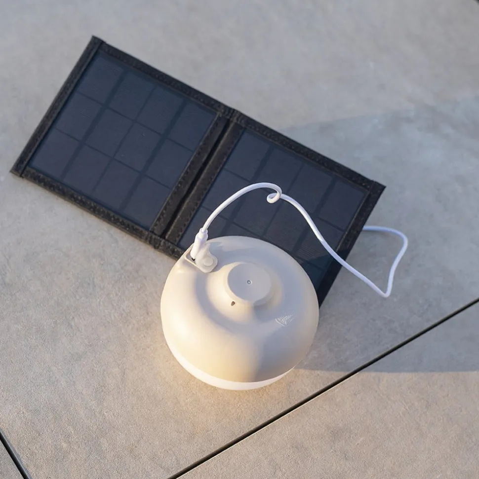 De Cherry solarlamp kan flexibel worden gebruikt als hanglamp of tafellamp, maar kan ook worden gebruikt als lichtbron voor lampenkappen. Dankzij beschermingsklasse IP54 kan hij zowel binnen als buiten worden gebruikt. Het warme licht kan worden gedimd met de meegeleverde afstandsbediening en creëert een gezellige sfeer op het balkon, op het terras, in de tuin of zelfs in het woongedeelte. Cherry kan worden opgeladen via een zonnepaneel of via een USB-kabel. Hij heeft geen externe stroomvoorziening nodig tijdens de werking en kan flexibel worden geplaatst.