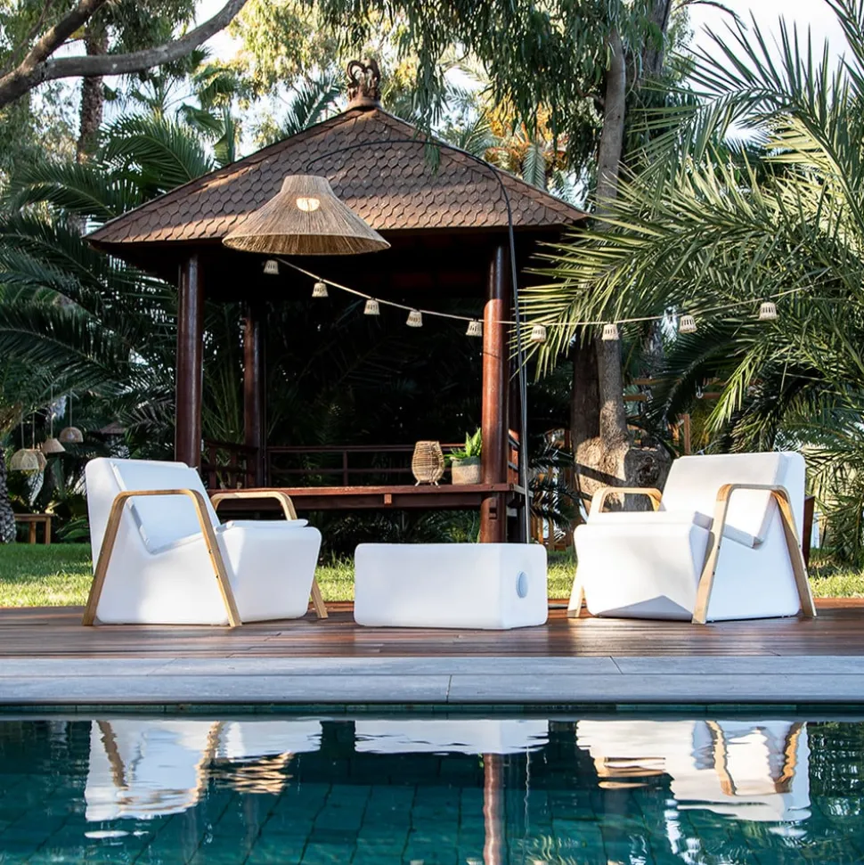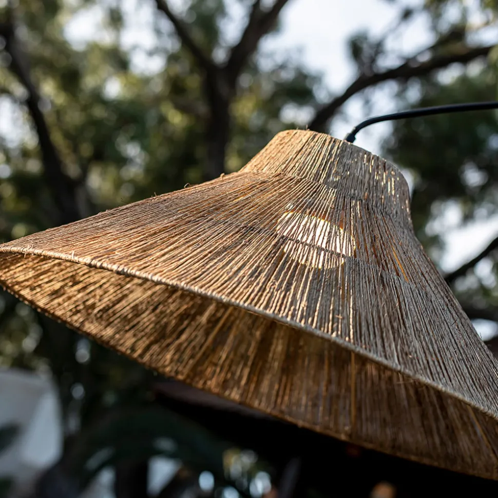 De lamp bestaat uit een zwart metalen frame en een uitgestrekte kap van natuurlijke vezels, die met de hand is gemaakt en een bijzonder gezellige sfeer creëert. Met de bijgeleverde afstandsbediening is het mogelijk de lamp aan en uit te schakelen en te dimmen. De fabrikant raadt aan het product onder een afdak te gebruiken, zodat de natuurlijke vezels beschermd zijn tegen zonlicht en regen. Met de bijgeleverde accessoires kan het bovenste deel van de lamp ook aan de wand worden bevestigd.