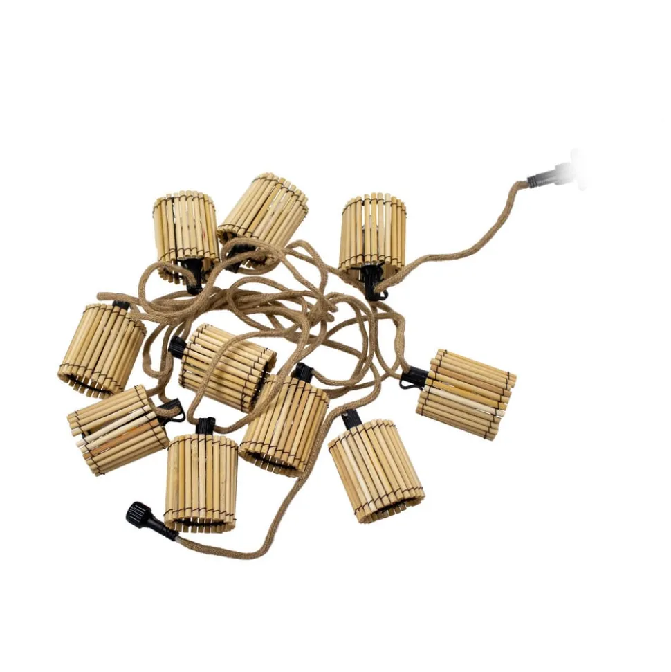 Okinawa sprookjeslampjes met tien lampjes voor buiten De Okinawa sprookjeslampjes met 10 lampjes en bamboekappen zijn een mooie decoratie voor buiten, zoals een terras of balkon. De ketting wordt geleverd met tien LED-lampen met een E12-lampvoet en twee reservelampen. Dankzij de IP44-beschermingsgraad (spatwaterdicht) is het veilig om buiten te gebruiken. Ook geschikt voor gebruik binnenshuis. Er kunnen maximaal vier lichtkettingen op elkaar worden aangesloten.