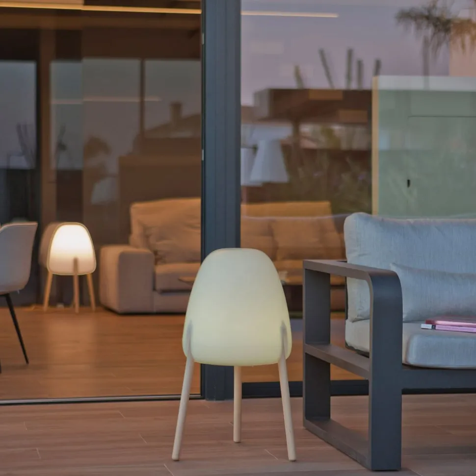 De staande lamp Rocket is een highlight op elk terras, niet alleen door zijn design en de combinatie van een witte polyethyleen kap en een driepotig frame van lichtgekleurd hout, maar ook door zijn flexibel instelbare verlichting. Zonder storende kabel kan hij overal in de buitenruimte worden geplaatst, want bovenop de lampenkap bevindt zich een zonnepaneel dat overdag de geïntegreerde accu oplaadt met zonne-energie. Als de zon niet genoeg schijnt, is er ook de mogelijkheid om de lamp via een kabel aan het stopcontact op te laden. De lampenkap is UV-bestendig en weerbestendig, het houten frame werd eveneens behandeld voor gebruik buitenshuis en de hele lamp is met beschermingsklasse IP65 beschermd tegen weersinvloeden.