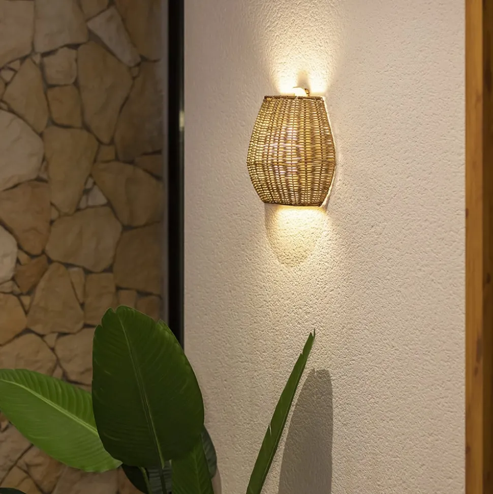 Dimbare LED-buitenwandlamp Saona in rotan