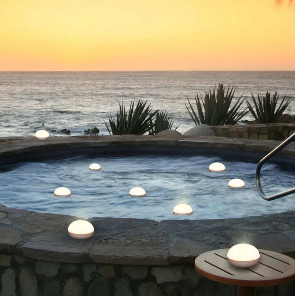 De bijna bolvormige Coco lamp kan worden gebruikt als waterdichte lamp in en op het water en als hanglamp op het terras (haak verkrijgbaar). Dankzij de beschermingsgraad IP68 kan de lamp ook volledig worden ondergedompeld, en de lamp kan worden opgeladen met de meegeleverde USB-C-kabel met magnetische aansluiting. Met een volledig opgeladen batterij kan de lamp tot 20 uur schijnen. Met de afstandsbediening (meegeleverd) kan de lamp in drie stappen worden in- en uitgeschakeld en gedimd en kan worden geschakeld tussen de verschillende lichtkleuren (wit en gekleurd).