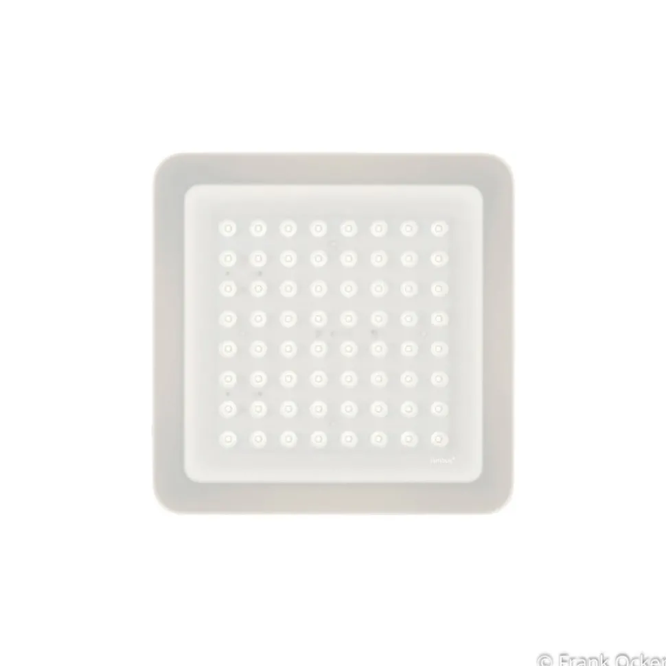Modul Q 64 LED plafondlamp in wit Die Q in de naam van de plafondlamp staat voor het vierkante ontwerp. Die 64 weerspiegelt het aantal LED’s achter de conische lichtemissieopeningen in de matte acryl diffuser. Het lamphuis is bevestigd aan de opbouwbehuizing via permanente magneten aan de achterkant. In de behuizing is een Konverter geïntegreerd die wordt aangesloten op het plafondstopcontact met 230 Jannes AC. Het minimalistische ontwerp is afkomstig van de Duitse armatuurfabrikant Nimbus. Bij het creëren van zijn eersteklas producten besteedt Nimbus bijzondere aandacht aan de formele kwaliteit van de componenten en aan de individuele designtaal. Het fabricageproces, inclusief de productontwikkeling, wordt daarom in eigen huis uitgevoerd.