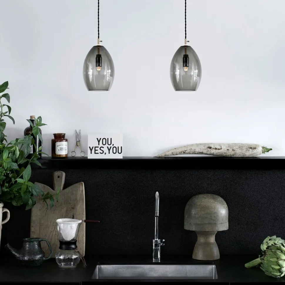 Discrete industriële look met mondgeblazen glas – hanglamp Unika