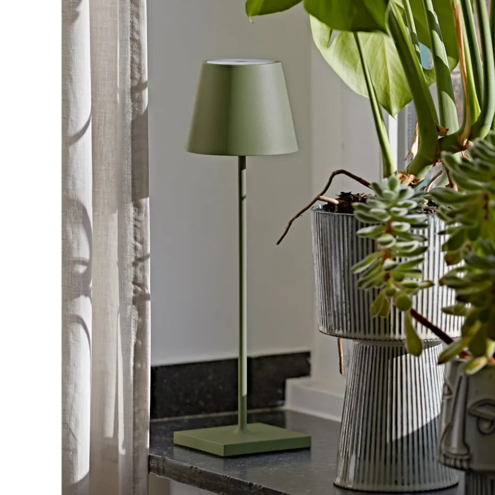 Nuindie LED oplaadbare tafellamp, USB-C, spar groen, IP54, dimbaar