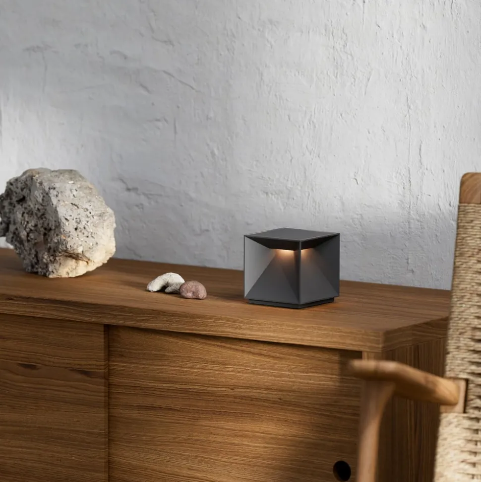 Instelbare warmwitte lichtkleur: Nutalis LED tafellamp, dimmer, warm CCT, Ra85, IP54 Praktisch voor nachtkastjes, bureaus en overal waar veel licht nodig is in een kleine ruimte: de Nutalis LED tafellamp is een kubusvormige oplaadbare lamp die veel licht geeft. De afgeschuinde zijden van de kubus reflecteren het licht op een elegante manier, zodat de lamp er als een kunstobject uitziet als hij aan staat. Dankzij de beschermingsgraad IP54 kan deze moderne tafellamp ook worden gebruikt in beschermde buitenruimtes, bijvoorbeeld op balkons. De geïntegreerde oplaadbare batterij zorgt voor een aangename verlichting met warmwit licht gedurende maximaal 9 uur, zelfs zonder snoer. De lichtkleur kan worden omgeschakeld tussen 2.200 en 2.700 Kelvin. Bovendien kan de intensiteit traploos worden gedimd door aanraking. Er wordt zowel een USB-kabel met magnetische oplaadaansluiting als een bijpassende netadapter meegeleverd, zodat Nutalis gemakkelijk kan worden opgeladen. Technische kenmerken – met oplaadbare batterij voor draadloos gebruik (USB-kabel en netadapter meegeleverd) – lichttemperatuur in het warmwit bereik kan worden aangepast met aanraken (2..200 / 2.700 K) – traploos dimbaar dankzij geïntegreerde dimmer – beschermd tegen spatwater (IP54) – batterijlevensduur: tot 9 uur – oplaadtijd: 5-7 uur – oplaadbare batterij: Li-Ion, 4.400 mAh – stevige standaard door eigen gewicht (560 g)