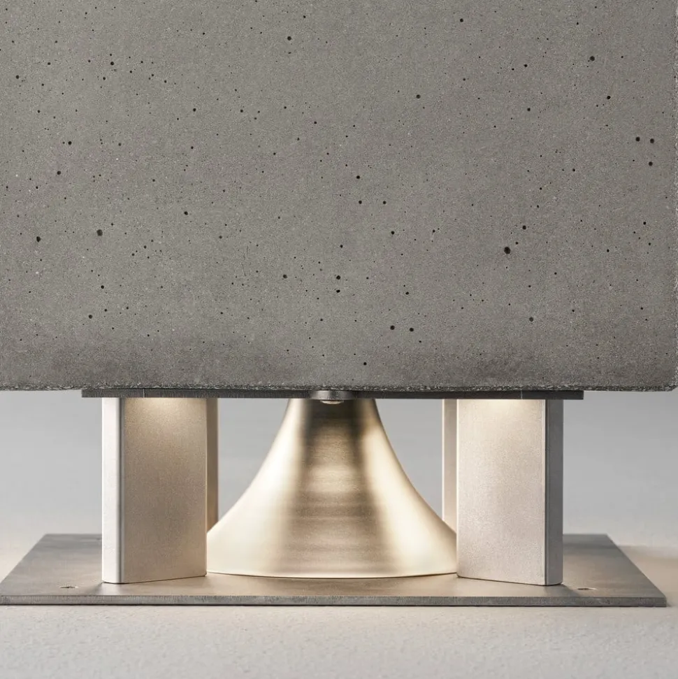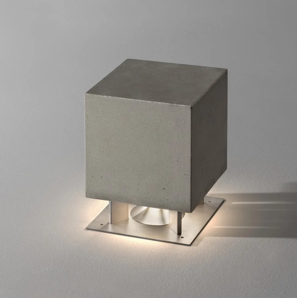 De Cemento basisarmatuur is een ontwerp van de architect Roberto Lanaro. Hij biedt een modern design en discreet licht en is bovendien uitgerust met een luidspreker (incl. aansluitkabel) die de muziek van uw keuze in de tuin laat klinken. De constructie bestaat uit een vierkante montageplaat, een kort frame en een betonnen kubus. Deze laatste is aan de onderzijde voorzien van LED’s, waarvan het licht de grond aan alle kanten verlicht. De LED-driver die nodig is voor de bediening moet afzonderlijk worden aangeschaft (zie accessoires).