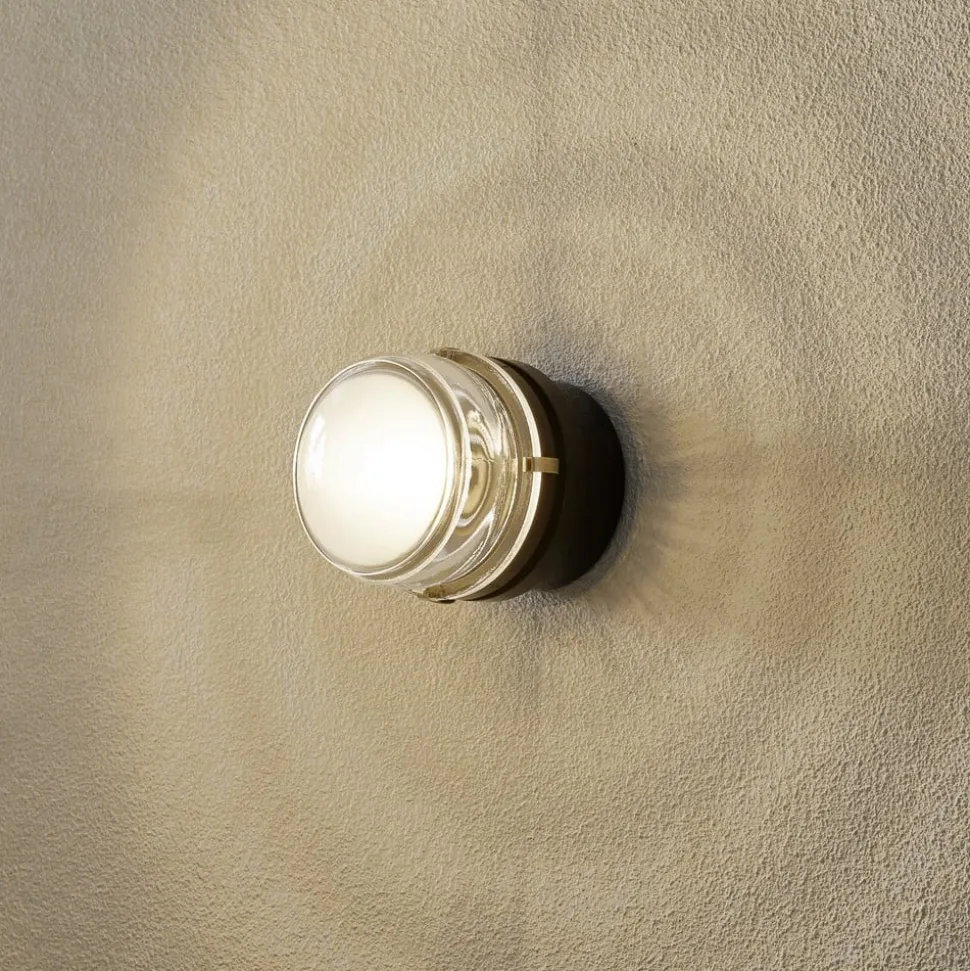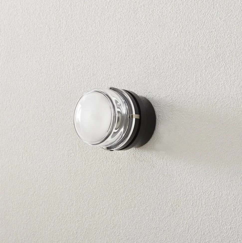 Oluce Fresnel wandlamp w. glazen lens IP44 zwart
