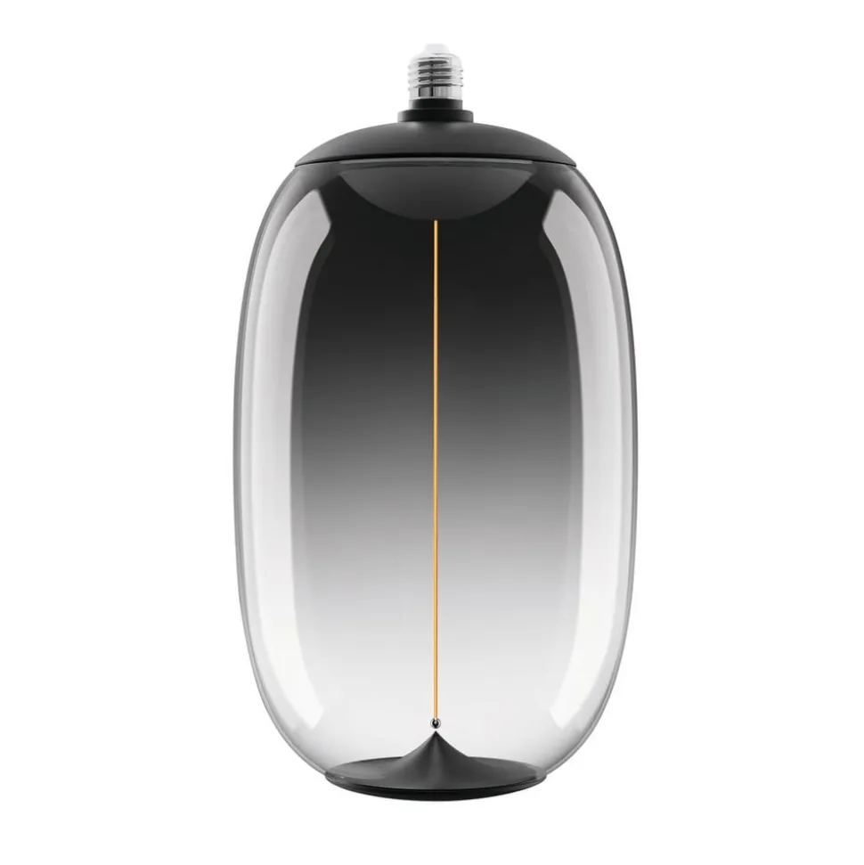 LED lamp Vintage Big Elipse Oval E27 12W 1.800 K Filament, rookgrijs getint, dimbaar Deze lamp uit de Vintage Big serie van Ledvance wordt gekenmerkt door zijn speciale vorm en grootte, zijn dimbaarheid en zijn decoratieve uiterlijk met de speciale filamentmagneettechnologie zonder filamenthouder. Hij straalt extra warm licht uit en is zowel een lamp als een kap – perfect voor elk armatuur zonder kap.