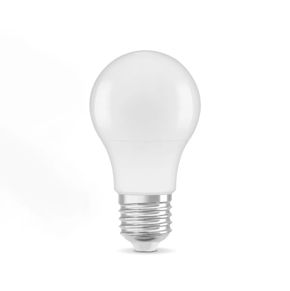 Gemaakt van gerecycled plastic: OSRAM Classic Star LED lichtbron, E27, 4,9 W, 4.000 K De Classic Star LED lichtbron met E27 lampvoet produceert universeel wit licht en maakt ook indruk met zowel haar klassieke retrofitformaat als haar matte oppervlak. Omdat er geen UV- of nabij-infraroodcomponenten in de lichtstraal zitten, is deze lichtbron ideaal voor het verlichten van warmtegevoelige objecten zoals voedsel of planten. Classic Star is gemaakt van minstens 40% gerecycled kunststof, produceert onmiddellijk 100% licht zonder opwarmtijd en is een universeel toepasbare LED lamp.