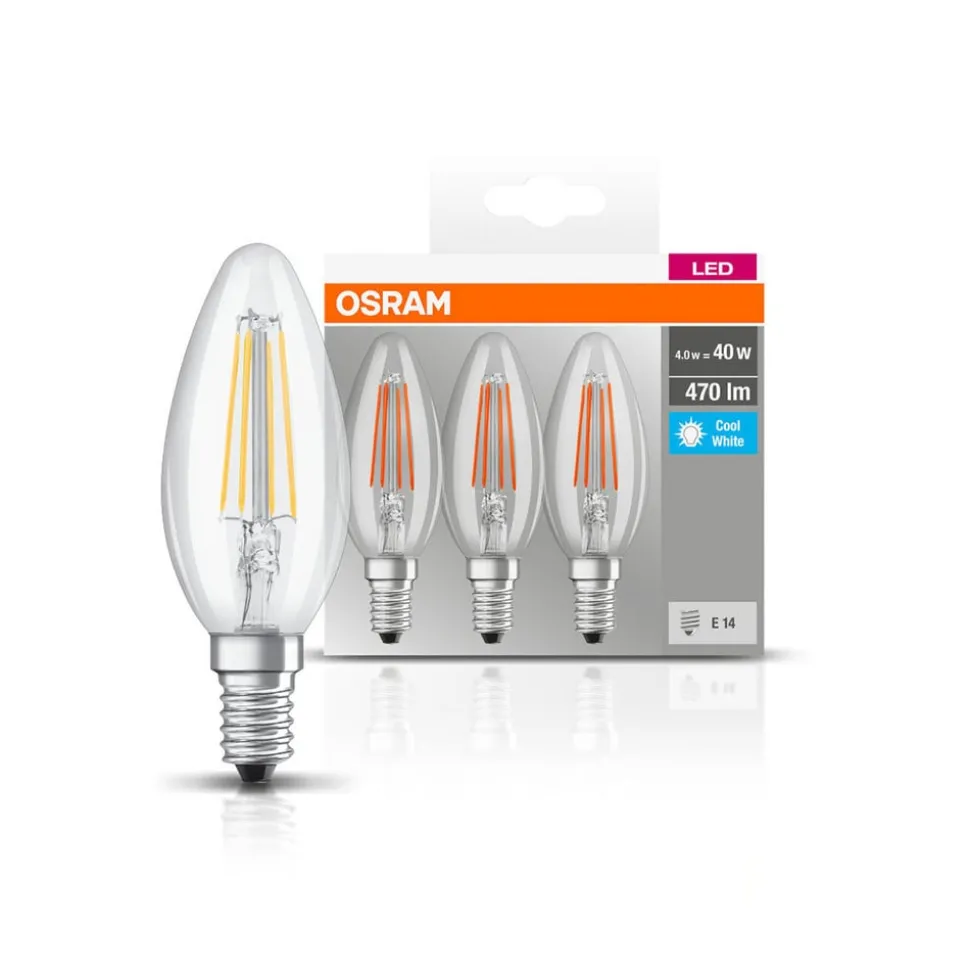 LED kaarslamp in filament look, E14, 4 Watt, universeel wit, in multipack