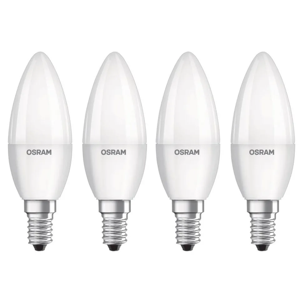 Deze LED kaarslamp van OSRAM wordt geleverd in een vouwdoos met 4 stuks. De lichtsterkte is vergelijkbaar met die van een 40W gloeilamp, maar verbruikt slechts een fractie van de energie.