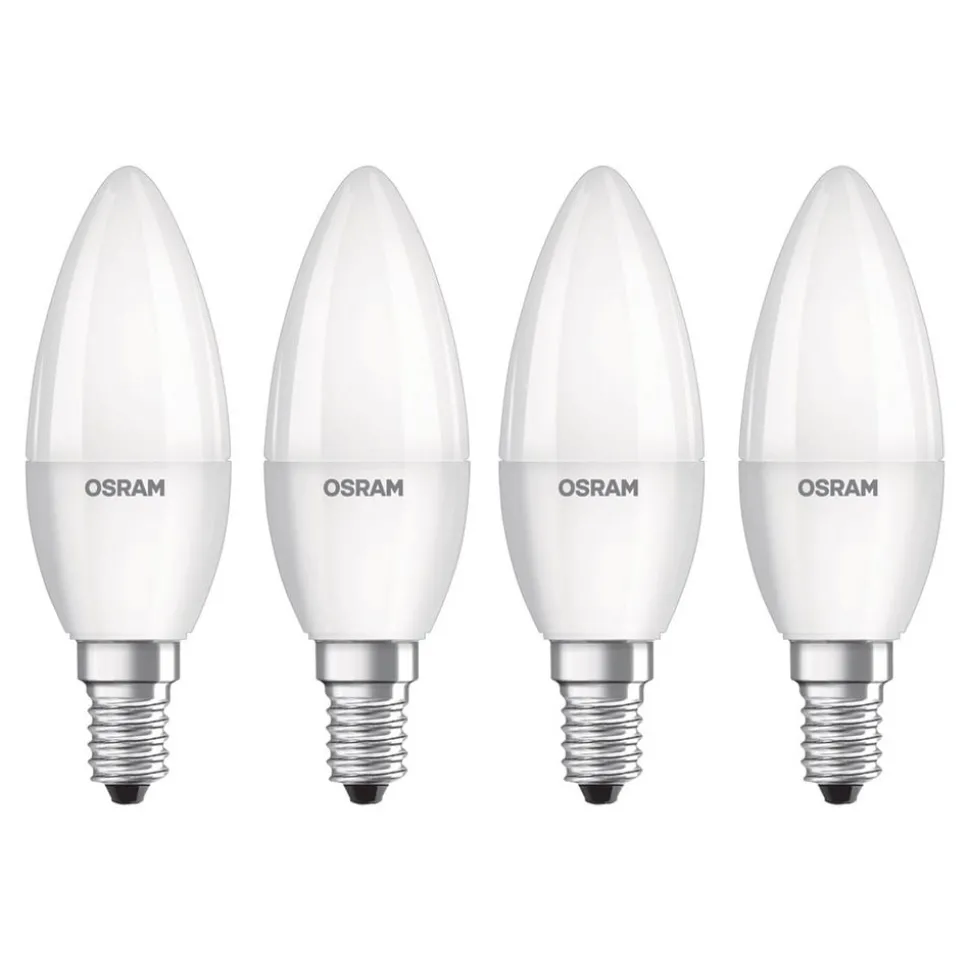Deze LED kaarslamp van OSRAM wordt geleverd in een vouwdoos met 4 stuks. De helderheid is vergelijkbaar met die van een gloeilamp van 40 W, maar er is slechts een fractie van de energie voor nodig.
