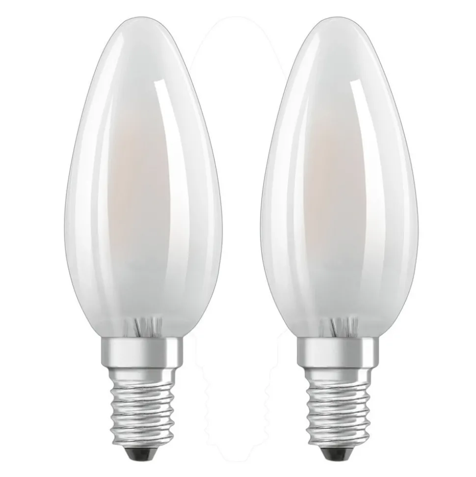 E14 LED Star Classic B kaarslamp van OSRAM 4W, 2.700 K, gematteerd in een dubbele verpakking