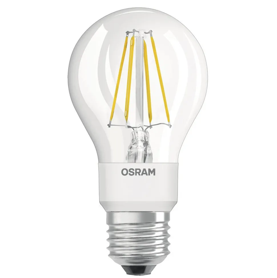 De heldere Star GLOWdim LED lamp van OSRAM heeft een decoratief gloeidraaddesign, waardoor deze ideaal is voor decoratieve armaturen. De lamp is dimbaar met vele in de handel verkrijgbare dimmers en verandert bij dimmen van lichtkleur. Hoe verder het licht wordt gedimd, hoe warmer en comfortabeler het wordt (2.700 K tot 2.200 K). Afmetingen en lichtstroom zijn vergelijkbaar met een 40W gloeilamp.