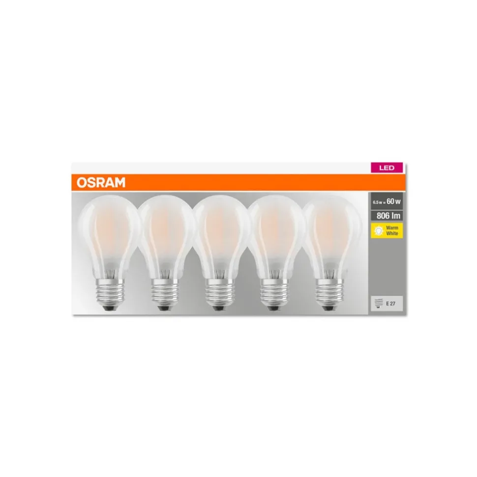 5-pack – LED lamp Base Classic A met E27 voet, 7 W, melkglaslamp, 806 lumen