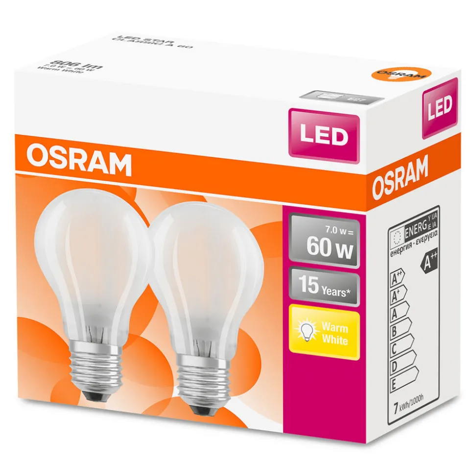 OSRAM LED lamp Classic Retrofit 6,5W, 2.700 K, mat in een dubbele verpakking