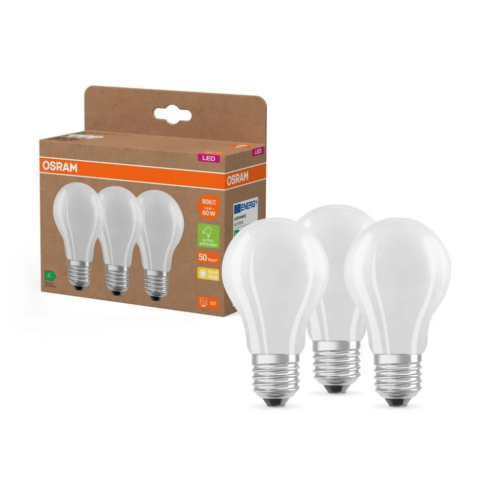 OSRAM LED lamp mat E27 3.8W 827 EEK A 3-pack