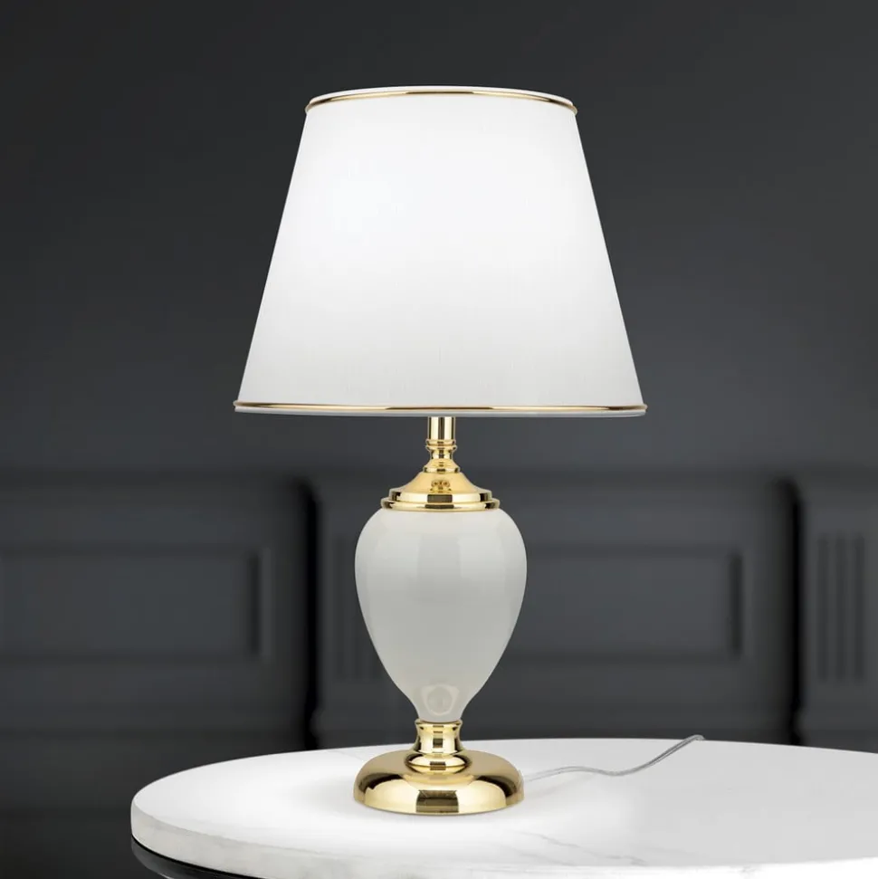 Ovum tafellamp, wit/goudkleurig, hoogte 48 cm, keramiek/chintz