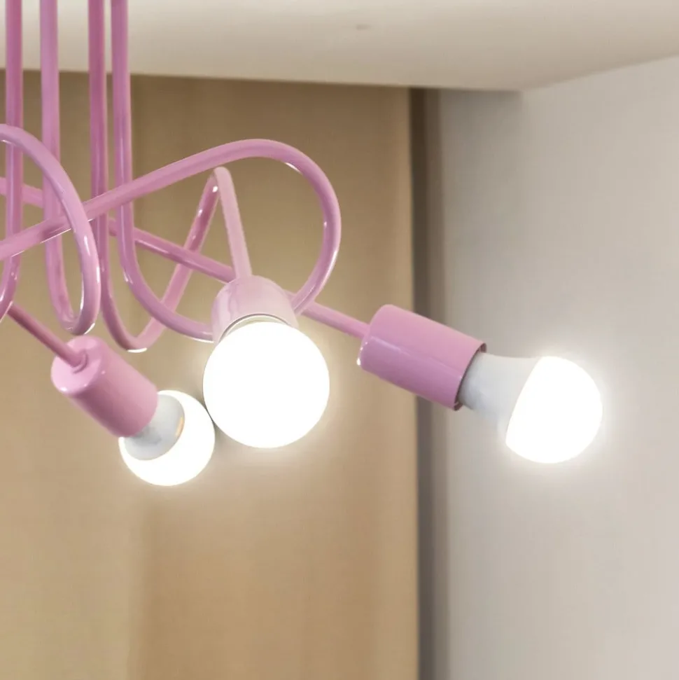 5-lamps Oxford plafondlamp in lichtroze De Oxford metalen plafondlamp combineert stijlvol design met functionele verlichting. De vijf lampenarmen reiken vanuit de ronde baldakijn naar beneden in de ruimte en wijzen in verschillende richtingen, zodat zelfs grote ruimtes helder verlicht worden vanuit elke hoek met deze plafondlamp. De Oxford plafondlamp is uitgerust met een gestandaardiseerde E27 fitting en maakt het mogelijk om de LED plafondlamp eenvoudig te vervangen, wat bijdraagt aan efficiënt energieverbruik. De robuuste metalen constructie zorgt voor duurzaamheid en past harmonieus in verschillende inrichtingsstijlen. De Oxford plafondlamp is daarom een ideale keuze voor wie waarde hecht aan kwaliteit en esthetische verscheidenheid.