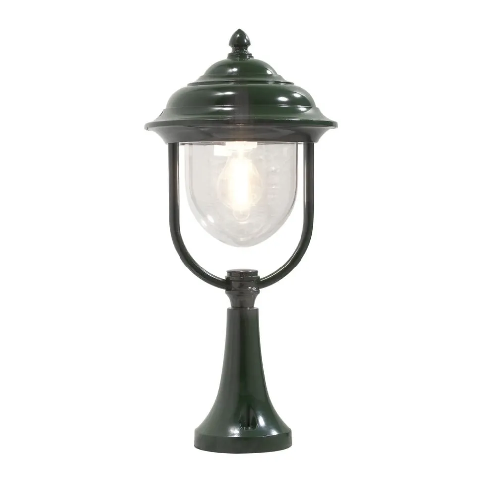 De Parma sokkellamp creëert een stijlvolle sfeer buitenshuis Parma is een klassieke sokkellamp van aluminium met helder kap. De mooi gevormde kap en decoraties geven de lamp een licht nostalgisch effect.