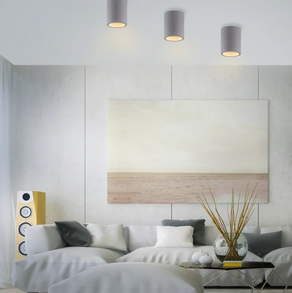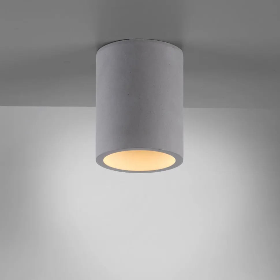 Eton plafondlamp met cilindrische betonnen kap De kap van de Eton plafondlamp is gegoten uit beton in een cilindrische vorm. Dit materiaal maakt de lamp tot een veelzijdig armatuur voor moderne of industriële woonkamers, gangen, keukens en vele andere ruimtes. Afhankelijk van de verlichtingstaak kan de plafondlamp afzonderlijk worden gemonteerd of gecombineerd met meerdere in een gewenste formatie.