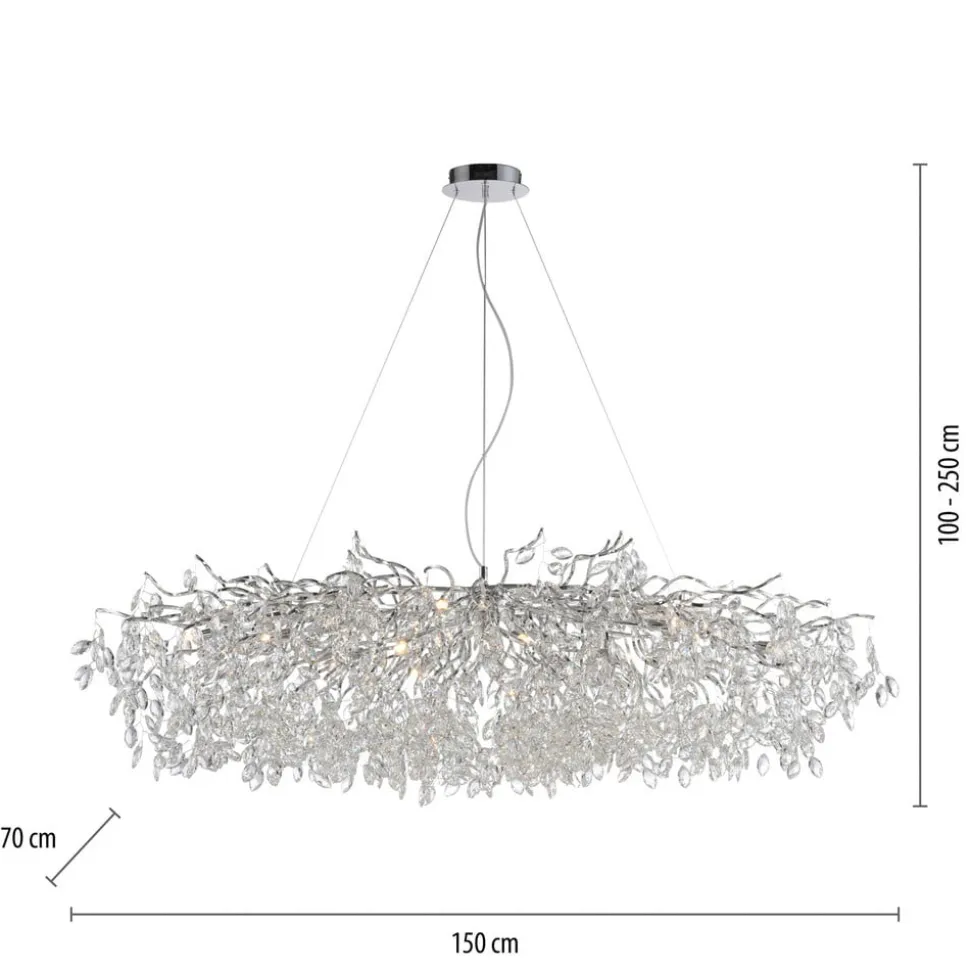 Paul Neuhaus kroonluchter Ricicle, chroom, lengte 150 cm