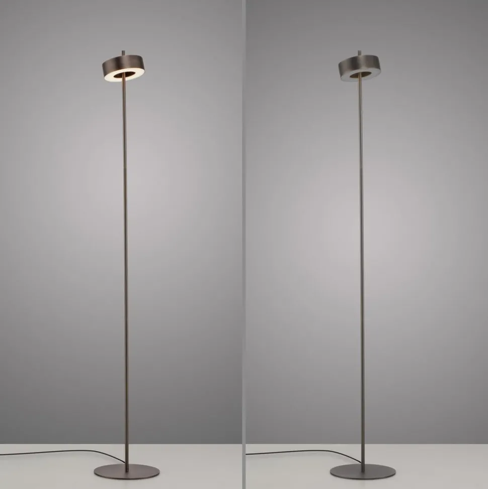 Moderne Q-Rotate LED vloerlamp met kantelbare kap – slim en te bedienen met afstandsbediening De Q-Rotate LED vloerlamp is zowel functioneel als visueel bij de tijd. De LED module bevindt zich in een ringvormige aluminium kap die draaibaar gemonteerd is vlakbij de bovenkant van de slanke, verticale framestang. Het licht wordt uitgestraald door gesatineerde afdekkingen aan de boven- en onderkant van de ring en er wordt een geschikte afstandsbediening meegeleverd voor schakelen, dimmen en het aanpassen van de lichttemperatuur. Naast de vrije instelling van het licht biedt deze ook voorgeconfigureerde opties zodat de perfecte verlichting voor bijna elke situatie gemakkelijk beschikbaar is. De vloerlamp Q-Smart-Home kan ook draadloos worden geïntegreerd in ZigBee gebaseerde smart home-systemen (bridge vereist) om de lamp te bedienen via een app of spraakbesturing, afhankelijk van de configuratie.