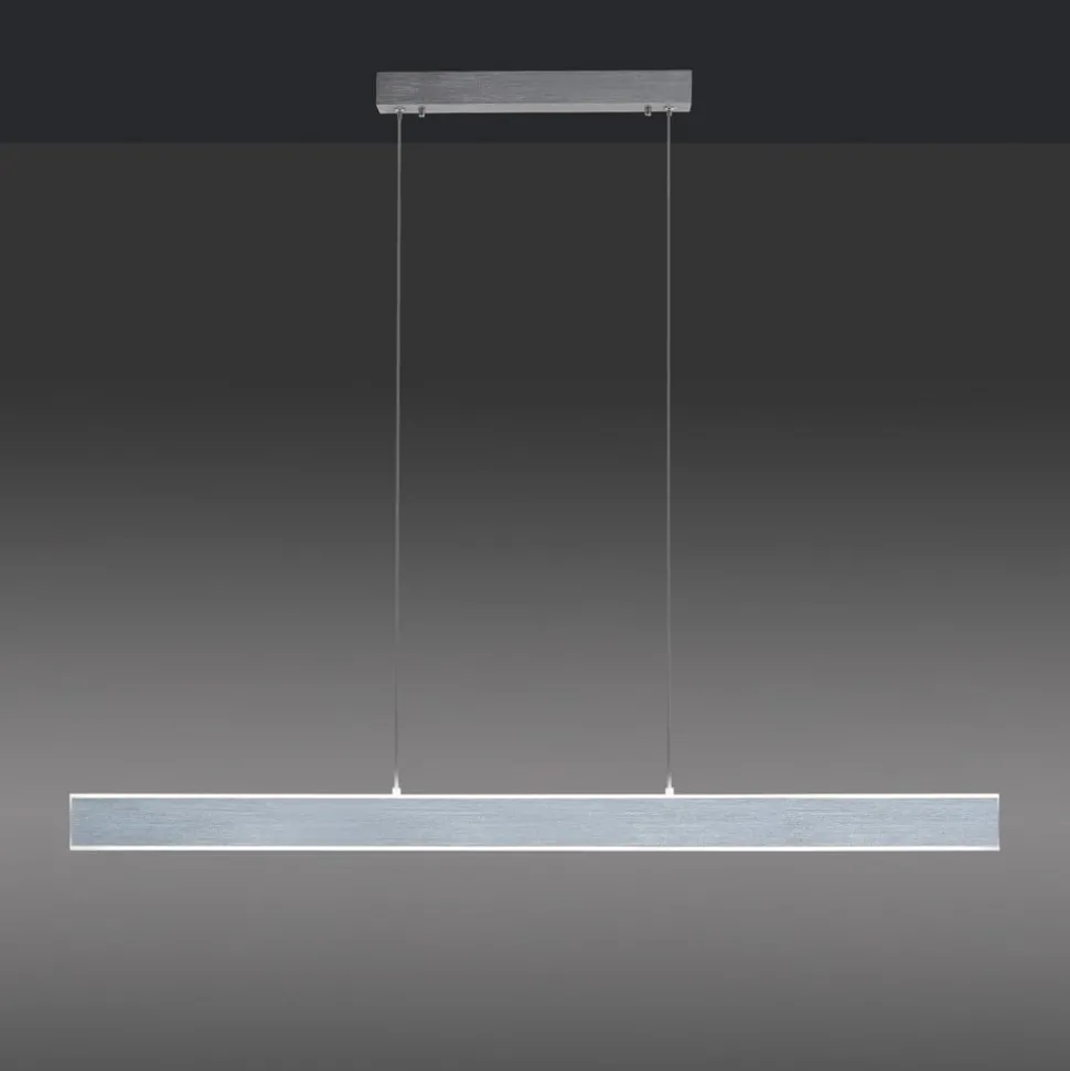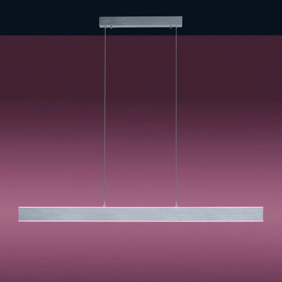 In elke situatie is de Q-Adriana LED pendelarmatuur een garantie voor het perfecte licht – of het nu tijdens een maaltijd aan de eettafel, thuis of op een feestje is. De LED’s zijn zowel aan de onder- als aan de bovenkant van het slanke aluminium corpus achter gesatineerd acryl geïntegreerd, zodat een directe en indirecte verlichting in gelijke mate wordt bereikt. Het spectrum varieert van warm wit tot universeel wit en meer dan 16 miljoen kleurschakeringen met een helderheid die altijd kan worden aangepast. De instellingen worden gemaakt met de bijgeleverde afstandsbediening. Bovendien is Q-Adriana compatibel met ZigBee en kan worden geïntegreerd in overeenkomstige smart home-systemen voor app-, spraak- of scènebediening.
