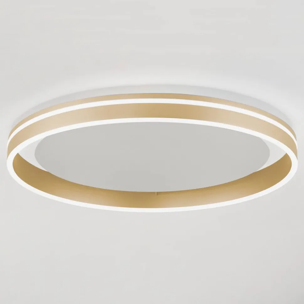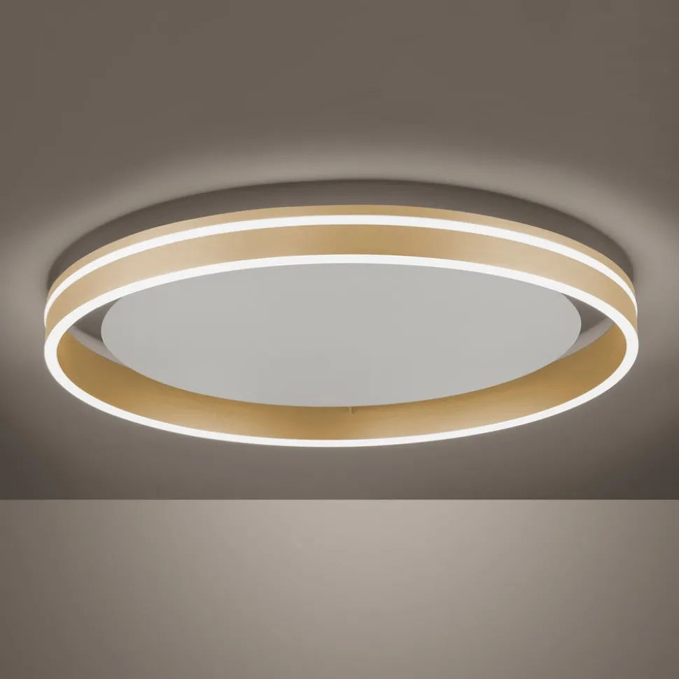 De LED-plafondlamp Q-Vito presenteert zich in een edele messing-look en een moderne vorm, die vooral wordt bereikt door de combinatie van de ringvormige lampenkap en het matte messing oppervlak. Met de bijgeleverde afstandsbediening kan het licht worden aangepast aan de vorm van de dag, zowel qua helderheid als qua lichttemperatuur. Als u eenmaal een lichtinstelling hebt gekozen, kan deze dankzij de geïntegreerde geheugenfunctie worden opgeslagen en bij het opnieuw inschakelen snel weer worden opgeroepen. Dankzij de innovatieve ZigBee-standaard kan Q-Vito ook worden aangesloten op uw eigen smart home-systeem en met een app worden bediend via een mobiel apparaat.