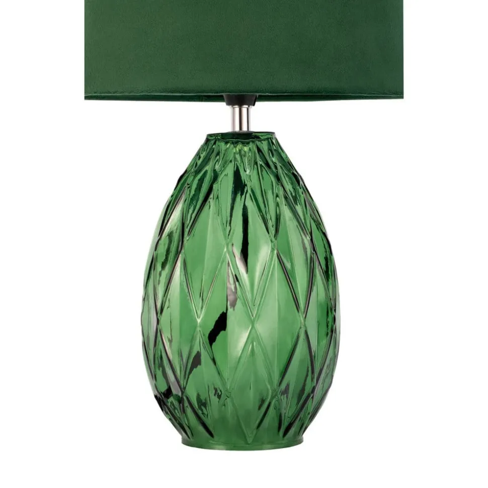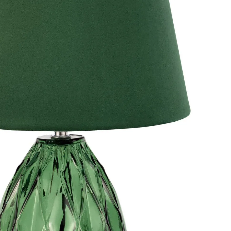 Groene lieveling in kristallook: De Crystal Vellvet tafellamp brengt gezellige lichtaccenten en een heel persoonlijk tintje in uw huis. De mooie lampenkap van donkergroen fluweel betovert in combinatie met de edele, ovale lampvoet in kristallook en harmonieert als grote blikvanger met klassieke en moderne inrichtingsstijlen. Crystal Velvet ziet er bijzonder goed uit op bijzettafeltjes of ladekastjes. Incl. snoerschakelaar.