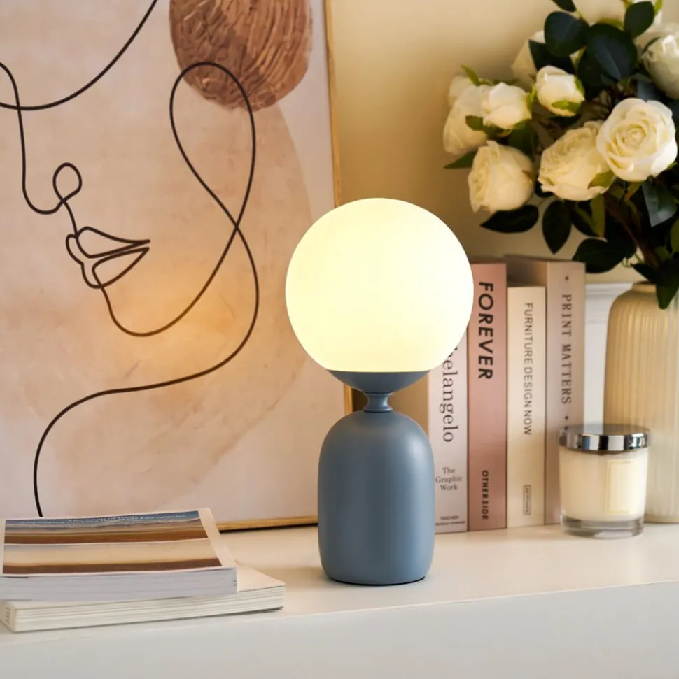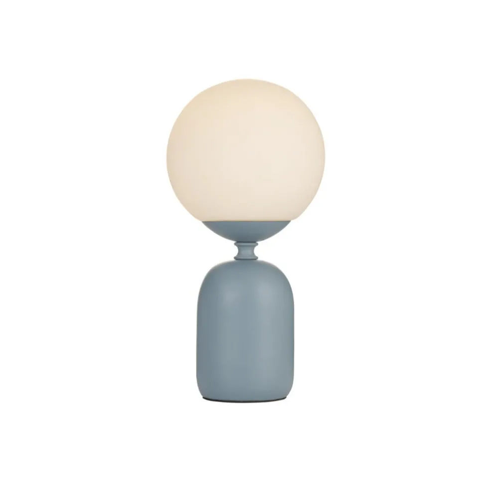 Glowing Charm tafellamp met opalen glazen bolkap en voet van keramiek De Glowing Charm tafellamp met een gekleurde keramieken lampvoet en een witte opalen glazen kap in bolvorm is een trendy blikvanger met een glamour touch. De lamp geeft de kamer net dat beetje extra en kan op bijna elke tafel worden geplaatst dankzij het elegante maar eenvoudige ontwerp. Inclusief insteekkabel met schakelaar.