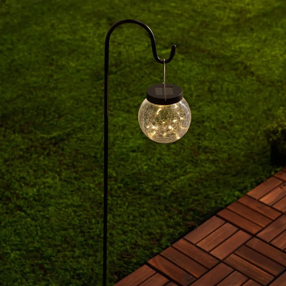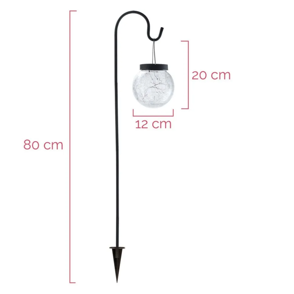 De Sunshine Pearl solar spike brengt decoratief licht op lange zomeravonden. Het zonnepaneel laadt overdag op in het zonlicht. Bij schemering gaat het licht automatisch aan. Het licht gaat tot 8 uur per dag mee. De hoogwaardige grondspies is gemaakt van robuust metaal en kan zonder veel moeite en verwarde kabels in de grond van een bloempot of in het plantenbed worden gestoken. Dit zorgt voor een gezellige sfeer op het balkon of in de tuin. De lichtgevende glazen bol wordt gewoon in de houder van de spike gehangen. Je kunt de bal ook in een boom hangen, bijvoorbeeld. Dankzij de IP-bescherming is het product spatwaterdicht.