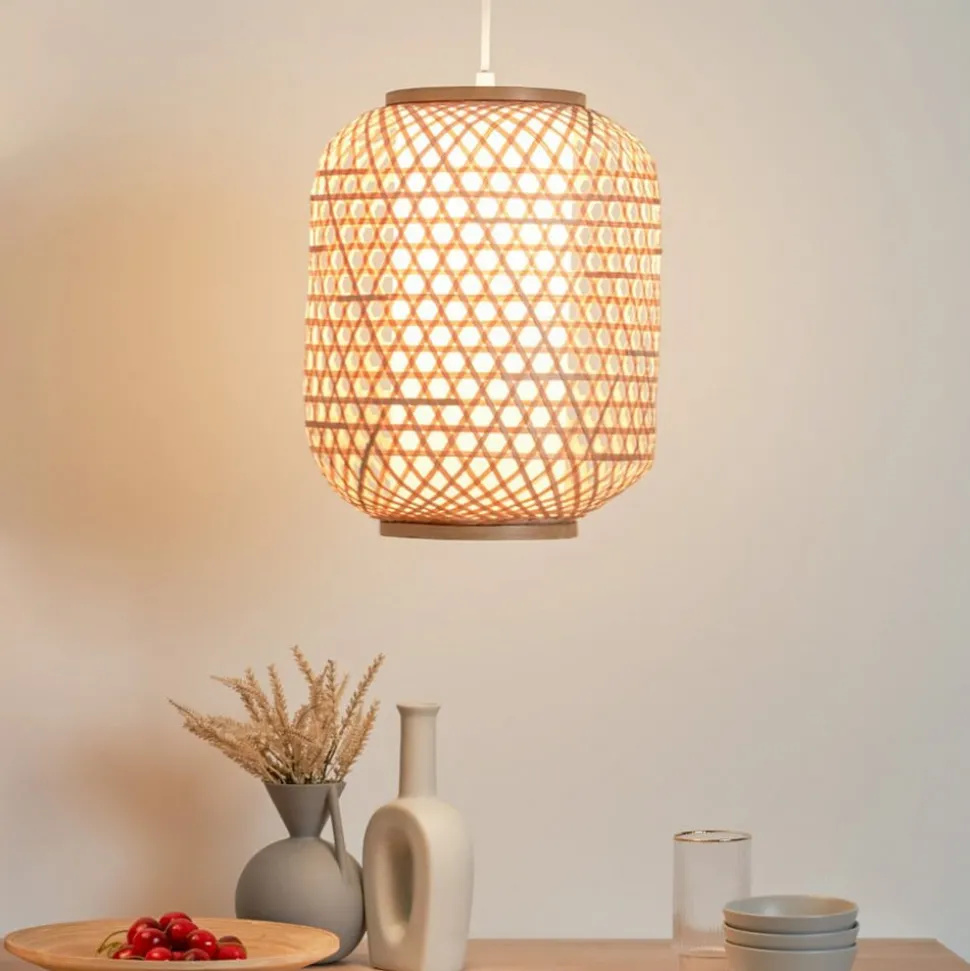 Woody Delight is een hanglamp met een natuurlijke uitstraling die bijzonder mooi in de boho-stijl kan worden geïntegreerd en boven elke tafel voor een fascinerende verlichting zorgt. De kap is gemaakt van een mandachtig bamboevlechtwerk, in de kap bevindt zich een andere cilindervormige kap van stof, die zorgt voor een niet-verblindende verlichting maar het licht wel fel laat doorschijnen. Gezellige verlichting is gegarandeerd met de Woody Delight hanglamp. Een ensemble van twee of meer armaturen ziet er heel mooi uit, zodat Woody Delight ook een lange tafel perfect kan verlichten.