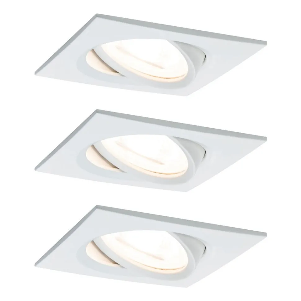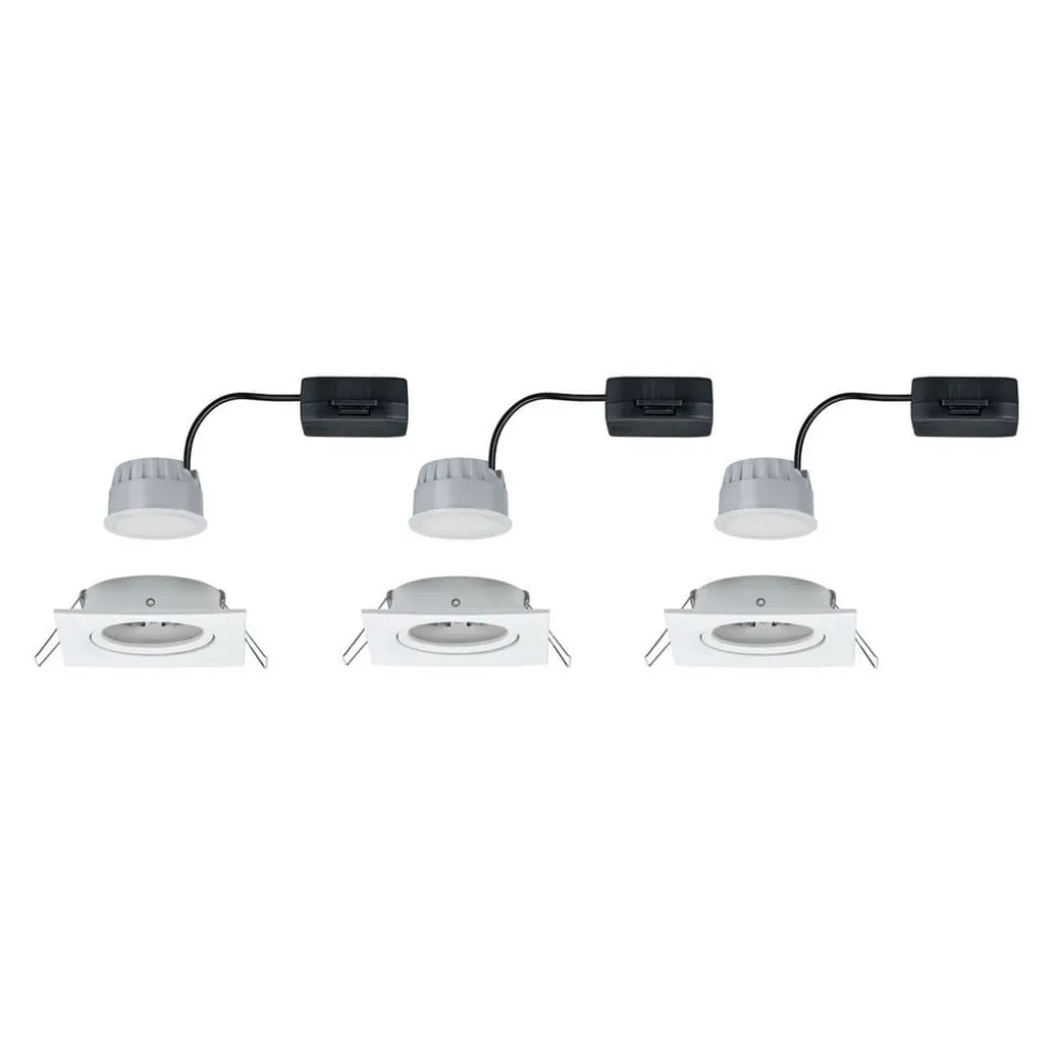 Paulmann 3-set spot Nova Coin vierk., dimbaar, wit