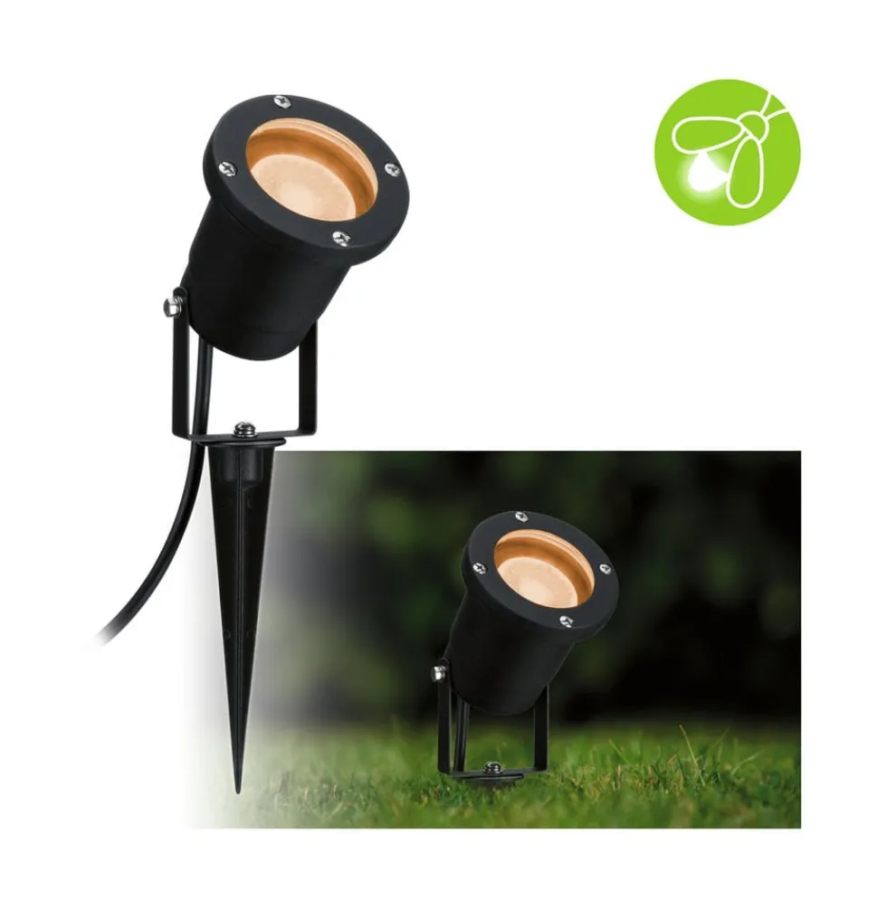 LED grondspiesspot 94731 met insectvriendelijke lichtkleurDe verstelbare tuinspot laat bloemen, struiken en bomen stralen in een warm gouden licht. Indien gewenst kan de armatuur ook zonder spike worden gebruikt als opbouwspot voor het verlichten van gevels, tuinhuisjes en terrassen. De meegeleverde lamp kan indien nodig worden vervangen. De spot met een lichtkleur van 2.200 K is bijzonder insectvriendelijk, omdat deze waarde buiten het zichtbare bereik ligt voor insecten, zodat zij niet worden aangetrokken door de extra lichtbron. De armatuur beschermt insecten actief zonder de voordelen voor de mens te verwaarlozen. Het warme gouden licht zorgt voor een aangename sfeer rond het huis.- Actieve bescherming van insecten door bewust gebruik van de kleurtemperatuur- IP-bescherming: IP65 straalbestendig- LED-lamp bij levering inbegrepen