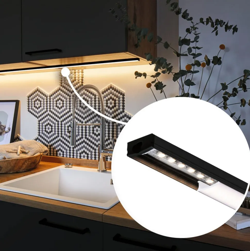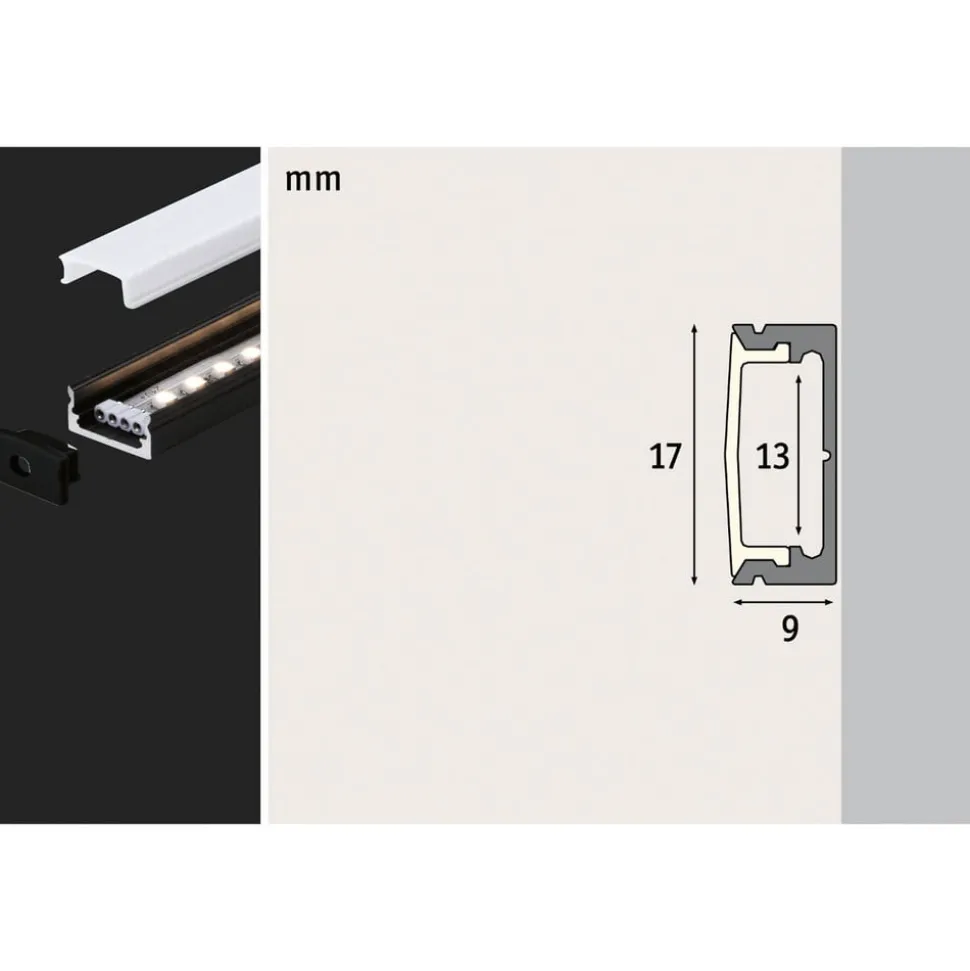 Dit aluminium profiel zorgt voor een homogene sfeerverlichting op meubels of wanden. Hij kan worden uitgerust met een MaxLED LED-strip en biedt een bijzonder gelijkmatige lichtuitstraling dankzij de gesatineerde kunststof diffuser. Het robuuste aluminium profiel is matzwart gelakt.