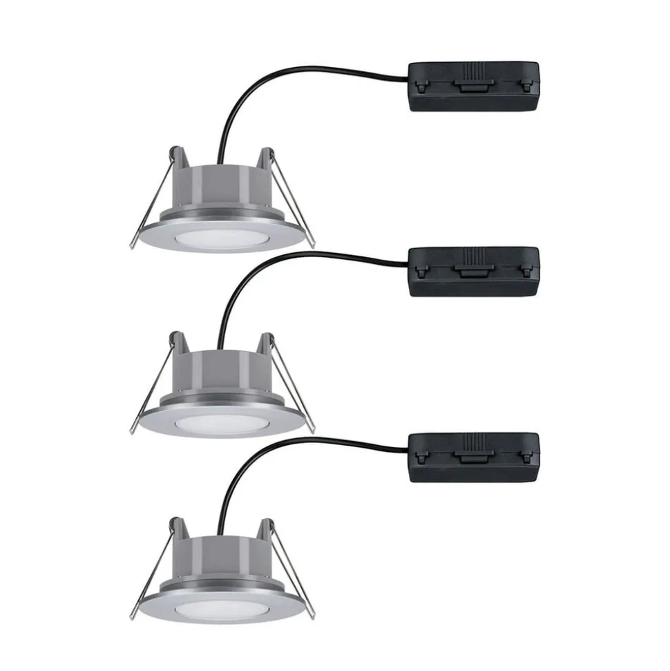Met de praktische set van 3 kan de hele ruimte worden uitgerust met de inbouwspot Calla. De fabrikant Paulmann heeft de behuizing straalvast ontworpen, zodat Calla niet alleen in bedrijfs-, kantoor- en woonkamers, maar ook buiten en in vochtige ruimtes betrouwbaar licht geeft. De eenvoudige ronde vorm blijft visueel onopvallend op de achtergrond.