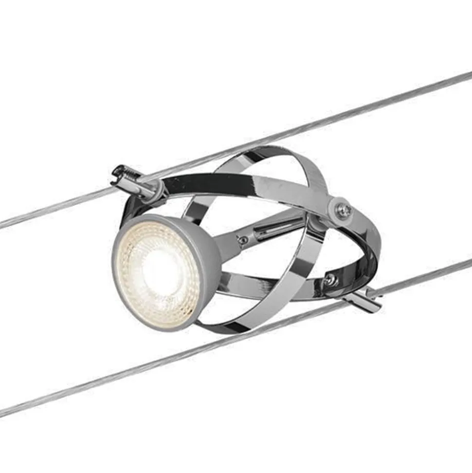 Zelfs grote ruimten kunnen worden verlicht met het Cardan-draadsysteem met acht vlammen. De armaturen van het draadsysteem bestaan uit twee smalle metalen ringen rond een GU5.3 lamphouder, waarbij de ringen kunnen worden gedraaid zodat het systeem visueel kan worden veranderd. Het kabelsysteem wordt aansluitklaar geleverd, inclusief montagemateriaal, en kan niet alleen aan het plafond maar ook aan een wand worden gemonteerd. Verlichtingsmateriaal is niet inbegrepen in de leveringsomvang.