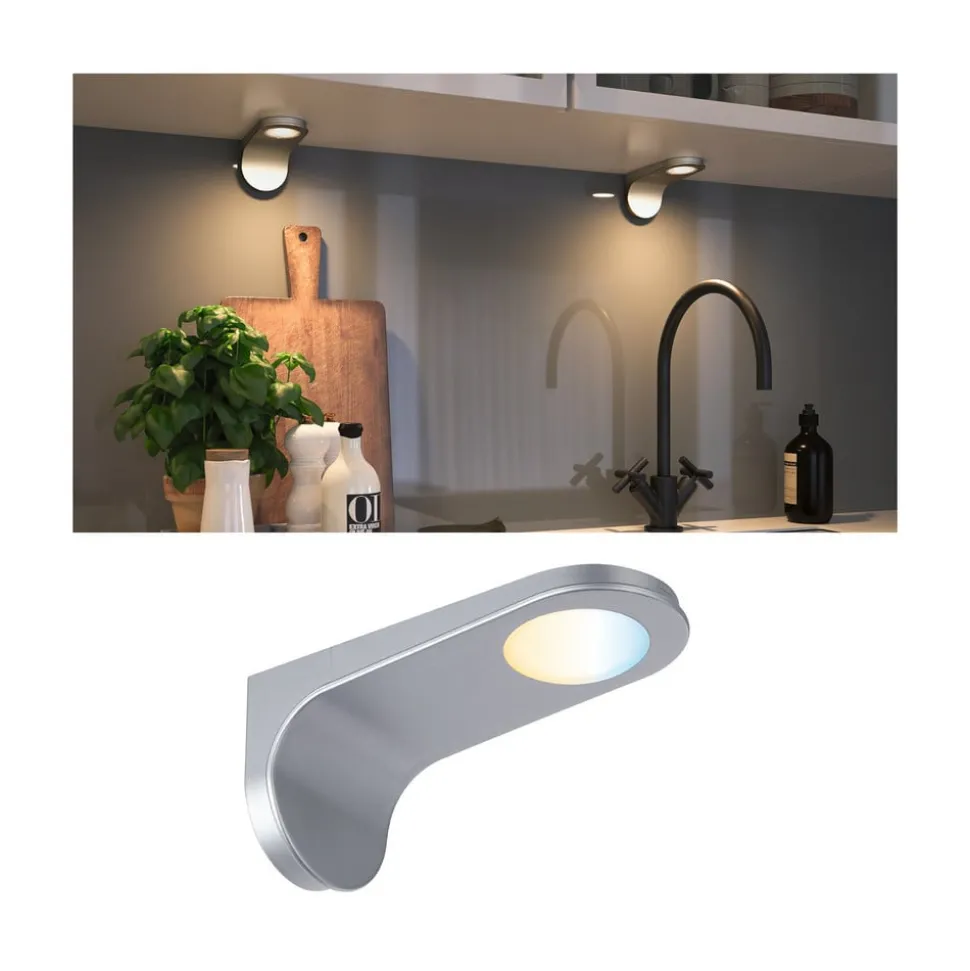 De Neda vloerlamp past perfect onder de bovenkasten in de keuken, waar hij er niet alleen goed uitziet omdat het lichaam van de lamp in de hoek iets naar beneden is getrokken, maar ook voor individuele verlichting zorgt. De meubellampen van de Clever Connect serie kunnen vrij worden gemonteerd en moeten, afhankelijk van het totale wattage, worden aangevuld met een geschikte LED-driver. Dankzij het eenvoudige insteeksysteem zijn de armaturen eenvoudig te installeren en kan het systeem op elk moment worden uitgebreid.