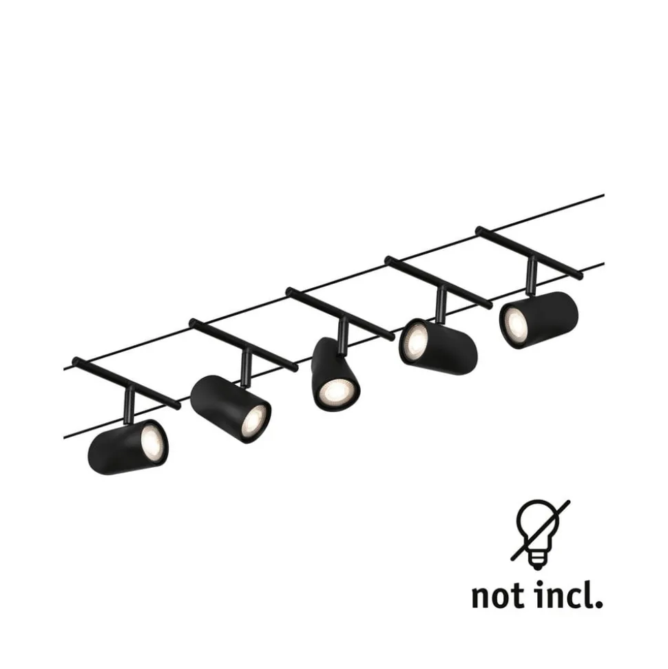 Touwsystemen kunnen in de meest uiteenlopende ruimten worden gebruikt en bieden een maximum aan ontwerpmogelijkheden. Het vijflamps Cup wire-systeem kan aan het plafond, op een schuin dak en zelfs aan een muur worden gemonteerd, waardoor het een probleemoplosser is voor moeilijke installatieomstandigheden. Dankzij de flexibel op de draad uit te lijnen spots en hun draai- en zwenkbaarheid kan de lichtbundel tot in elke hoek van een kamer of een lange gang worden gericht en kunnen gerichte accenten met licht worden gezet.