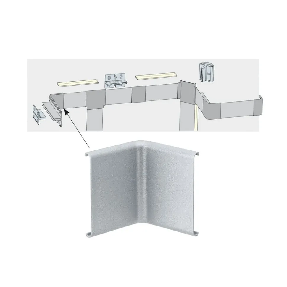 Deze aluminiumkleurige kunststof afdekkap dekt de binnenhoekverbindingen af van het Duo Profil led-strip systeem. Verpakt per 2 stuks.