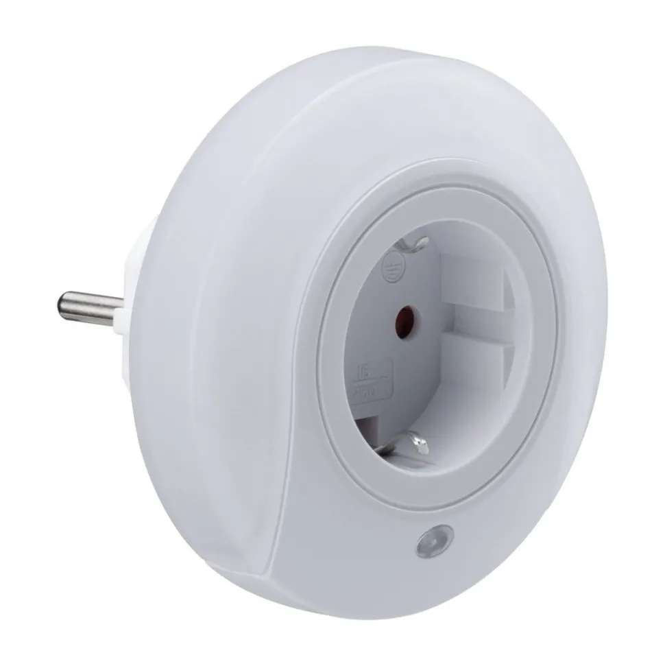 Het LED nachtlampje Esby is een klein, modern nachtlampje voor het stopcontact dat handmatig kan worden in- en uitgeschakeld of via de geïntegreerde schemersensor kan worden geactiveerd. Hij verlicht zowel donkere gangen als kinderkamers en slaapkamers, waarbij de LED-lichtbron een aangenaam warm wit licht uitstraalt. Het ronde uiterlijk en het moderne ontwerp passen onopvallend in elk interieur. Esby bevat een stopcontact in het midden, zodat de functie van het door het nachtlampje bezette stopcontact nog kan worden gebruikt.