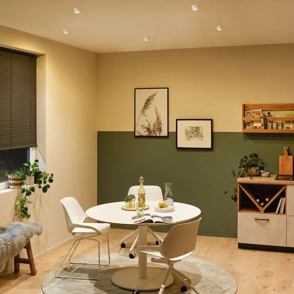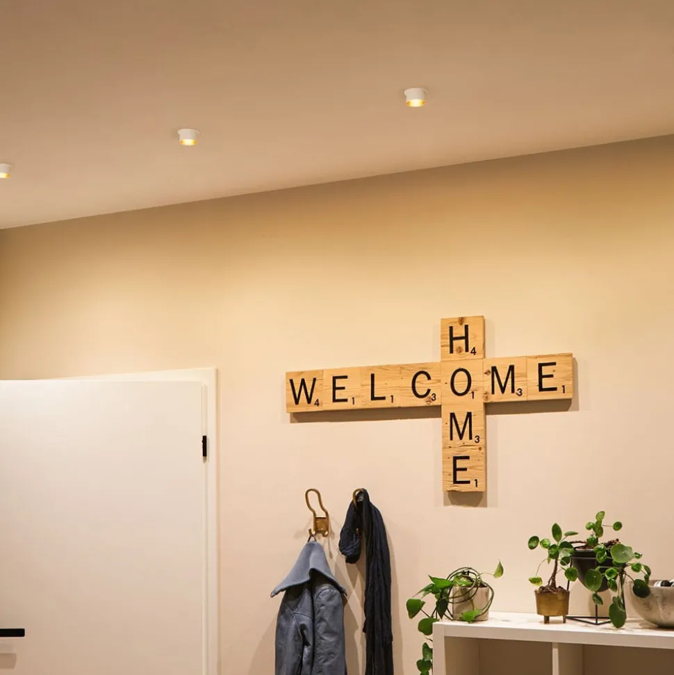 Tweekleurige LED inbouwlamp Gil in een set van drie – dimbaar in 3 niveaus Inbouwlampen zoals Gil creëren lichtaccenten in moderne woonruimtes: deze LED inbouwlamp in een set van 3 kan zelfs worden gebruikt in de badkamer, sauna en elke andere vochtige ruimte dankzij de beschermingsgraad IP44. De decoratieve cilinder steekt iets uit. Die diepere lichtpunten stralen warmwit licht en technische schittering uit: Ze kunnen oneindig aan elkaar worden gekoppeld en hun licht kan in drie fasen worden gedimd met de normale wandschakelaar om de gewenste verlichtingsstemming te bereiken: 100%, 50% of 25%. Die LED’s zijn ook vervangbaar en moeten door een gespecialiseerd bedrijf worden vervangen – 230 V directe aansluiting