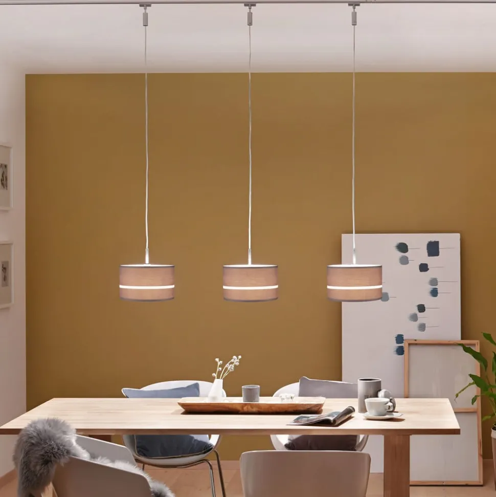 Cilindrische kap Tessa van textiel met decoratieve strip voor Basic De eenvoudige, klassieke kap Tessa van textiel in een cilindervorm is de perfecte keuze voor de railsystemen URail en VariLine van Paulmann voor gebruik in woonkamers. Tessa creëert een gezellige sfeer, vooral in de woon- of slaapkamer. De horizontale witte strip rondom dient als verzachtend element op de anders effen buitenkant – Alleen geschikt voor gebruik met Basic hanglampophangingen van Paulmann (apart verkrijgbaar) – Geschikte lampen: max. 50 W