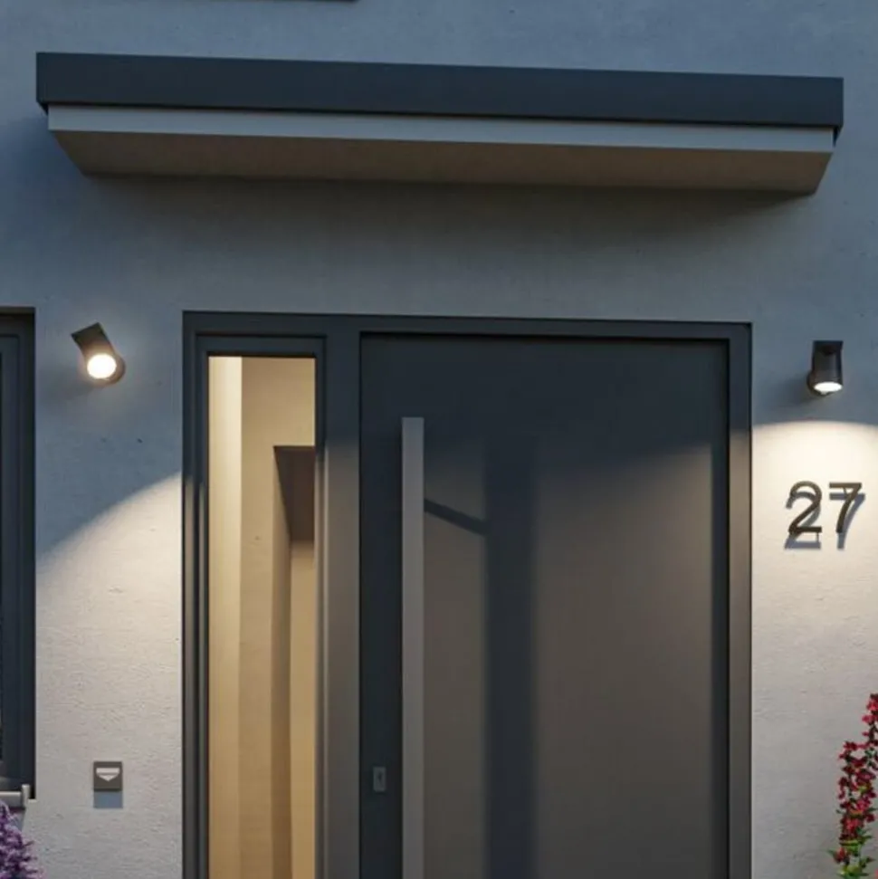 LED buitenwandlamp Cuff met bewegingsmelder, verstelbaar Cuff is een LED buitenwandlamp van aluminium, die is uitgerust met een spotkop die 340° kan draaien en 90° kan zwenken. Het armatuur is zeewaterbestendig zodat het ook zonder problemen in kustgebieden kan worden geïnstalleerd. Het warmwitte licht van de ingebouwde LED wordt geactiveerd door de geïntegreerde schemersensor en gaat pas na een bepaalde duisternis automatisch aan als er beweging wordt gedetecteerd. Het licht brandt dan 15 seconden voordat het automatisch weer wordt uitgeschakeld. Gegevens bewegingsmelder: – Bereik 4 m, detectiehoek 120° – Responshelderheid onder 15 lux – aan, boven 100 lux uit – Lichtduur 15 seconden – Montagehoogte 1,8 tot 2,5 meter