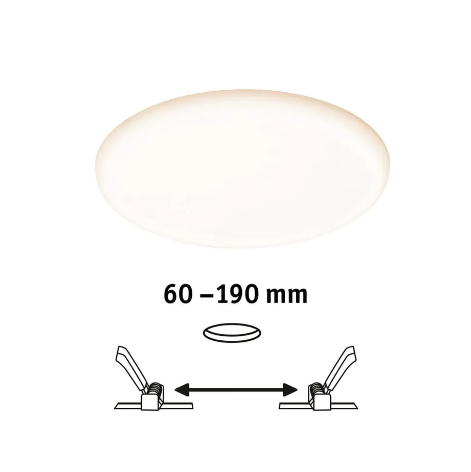 Bedienbaar met een mobiel apparaat – Veluna ronde LED inbouwlamp met ZigBee functie De ZigBee functie opent volledig nieuwe mogelijkheden voor het vlakke inbouwpaneel: Mite de gratis App en de Smart Friends Box of optioneel met de Paulmann ZigBee afstandsbediening (geheel zonder app) kan de witlichtregeling op drie niveaus worden ingesteld. Zo kun je bijvoorbeeld vanuit je luie stoel kiezen tussen de lichtkleuren daglicht en universeel wit voor geconcentreerd werken en behaaglijk warmwit voor ontspannende uurtjes. Praktisch gezien is Veluna ook voorzien van IP44 spatwaterbescherming, waardoor de lamp ook in vochtbestendige ruimtes zoals de badkamer of hobbykamer kan worden gebruikt – Installatiediameter variabel dankzij verschuifbare veerklemmen aan de achterkant – Kan worden gemonteerd als wand- of plafondlamp Technische gegevens / compatibiliteit: – Kan worden bediend met de gratis Smart Friends app (iOS of Android) via smartphone of tablet met de Paulmann Smart Friends Box of met de Paulmann ZigBee afstandsbediening (zie accessoires) – Compatibel met de volgende systemen: Amazon Alexa Echo Plus, Philips Hue Bridge 2 (behalve: Hue Entertainment), Osram SMART+ – uitbreidbaar met andere Smart Friends producten van verschillende fabrikanten – compatibel met ZigBee 3.0