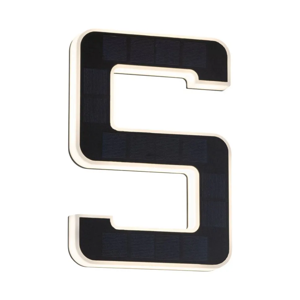 Buitenhuisnummer op zonne-energie in zwart met warmwitte verlichting