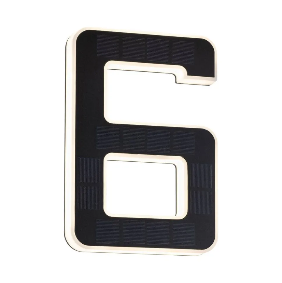 Buitenhuisnummer op zonne-energie in zwart met warmwitte verlichting